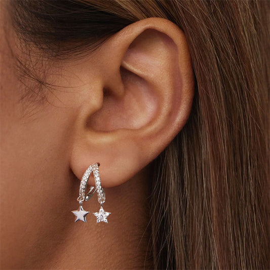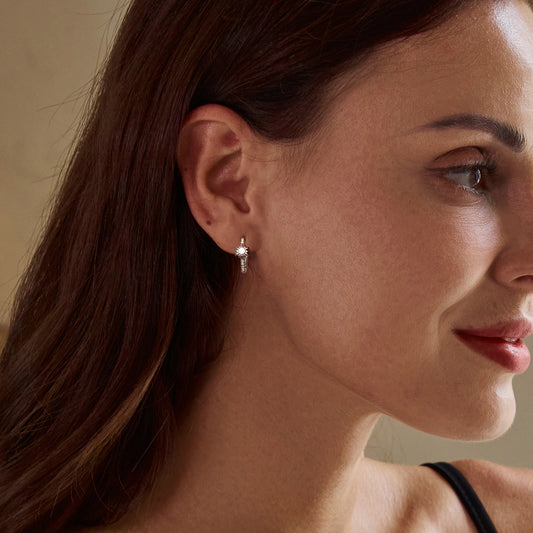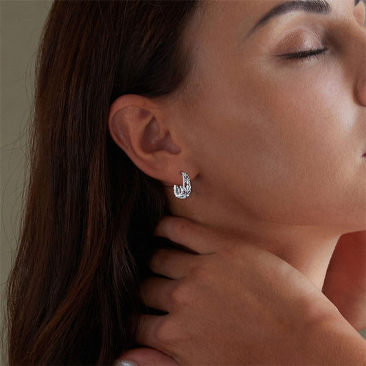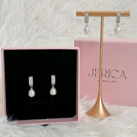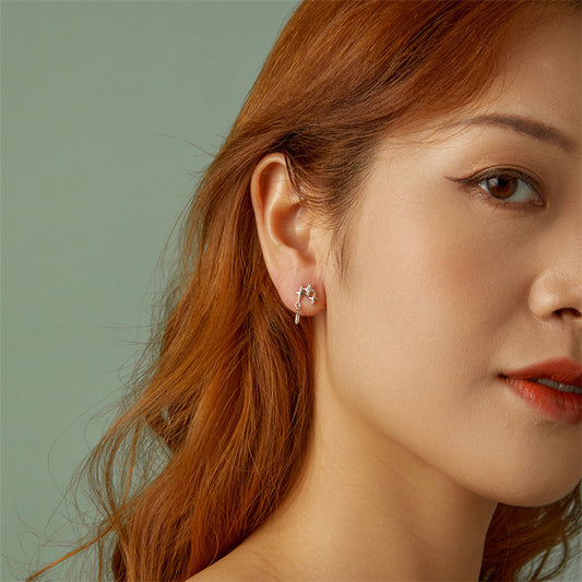 Stellar Sparkle Pearl Crescent Studs Earrings